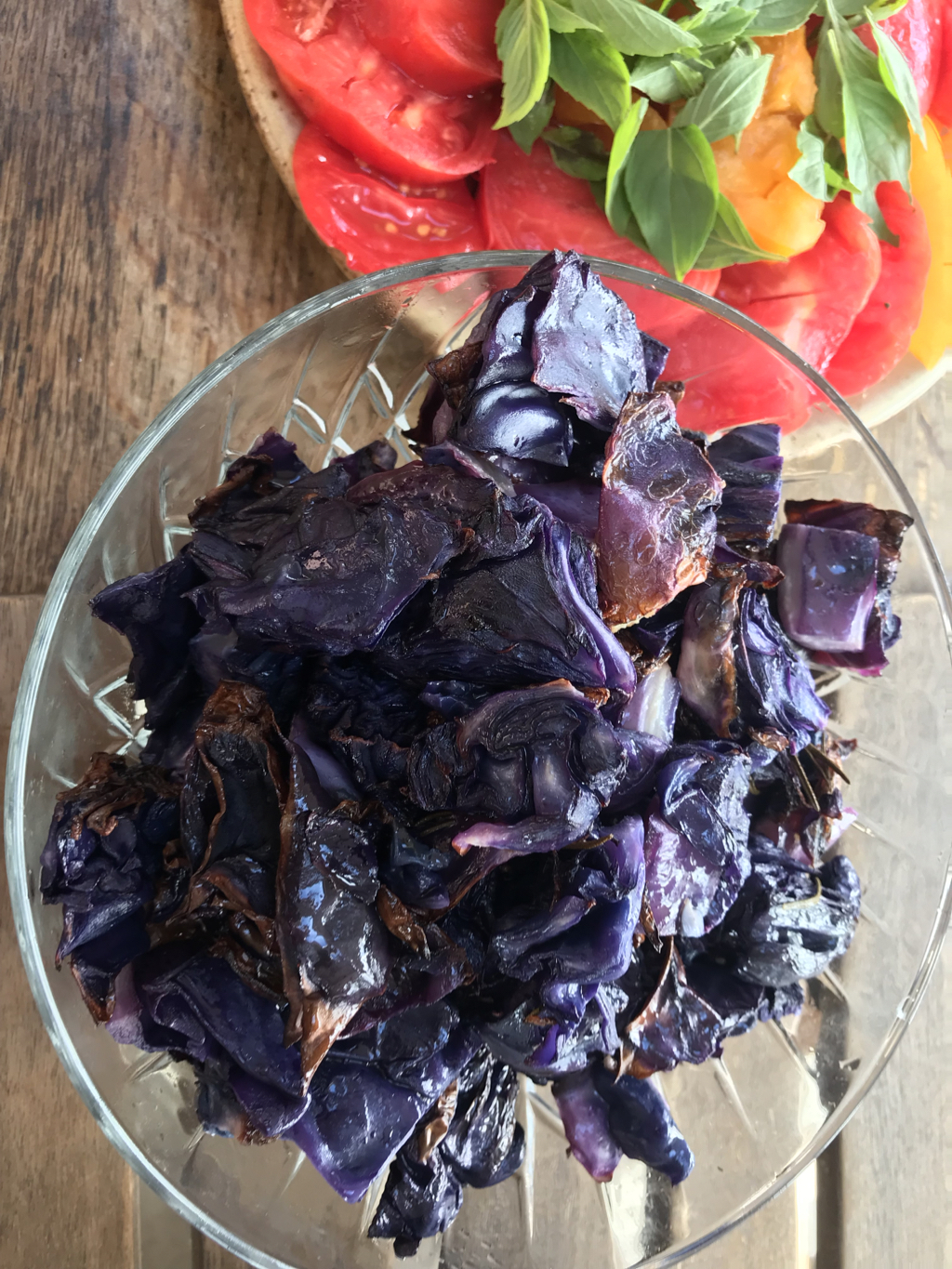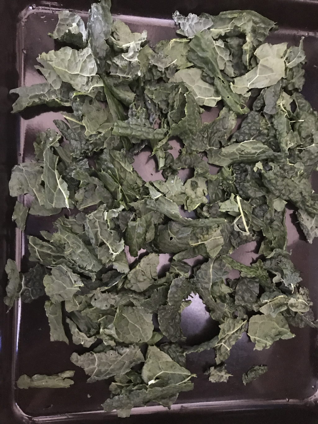 Whilst the onions are cooking make the crisps, strip the leaves from the main stems (the stems can be composted or saved to add to stocks). Rip the leaves into pieces around 5cm long and place on an oven tray. Sprinkle on a little salt and pepper (if desired) and a drizzle of oil, wiggle it about with your fingers coat the leaves and place in the oven.