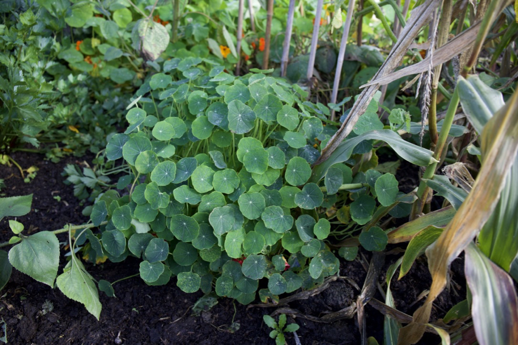 Adjacent to the brassica beds were two large areas of nasturtiums. It is often claimed that nasturtiums can be grown as sacrificial crops, enticing the butterflies to lay their eggs on these and not on your brassicas. Yet my nasturtiums had barely a nibble and just a few caterpillars in residence. I grow them for a crop – they are so delicious – and have never found them to deter caterpillars from my brassicas.