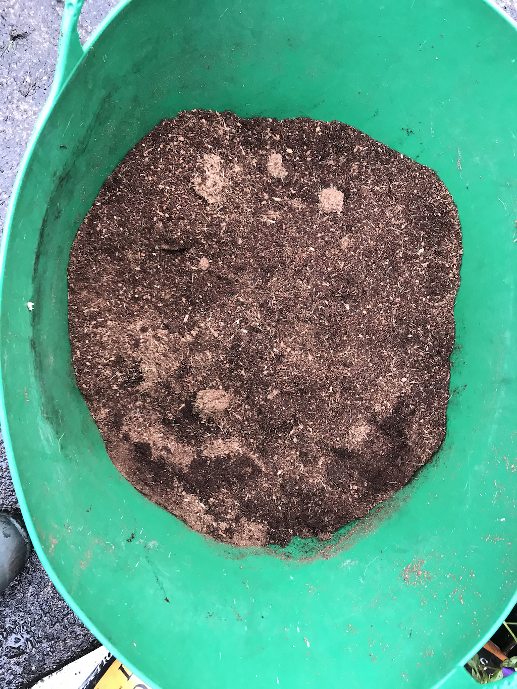 – pre-used compost I’d saved from last summer’s pots. This is one big container and uses a lot of compost!