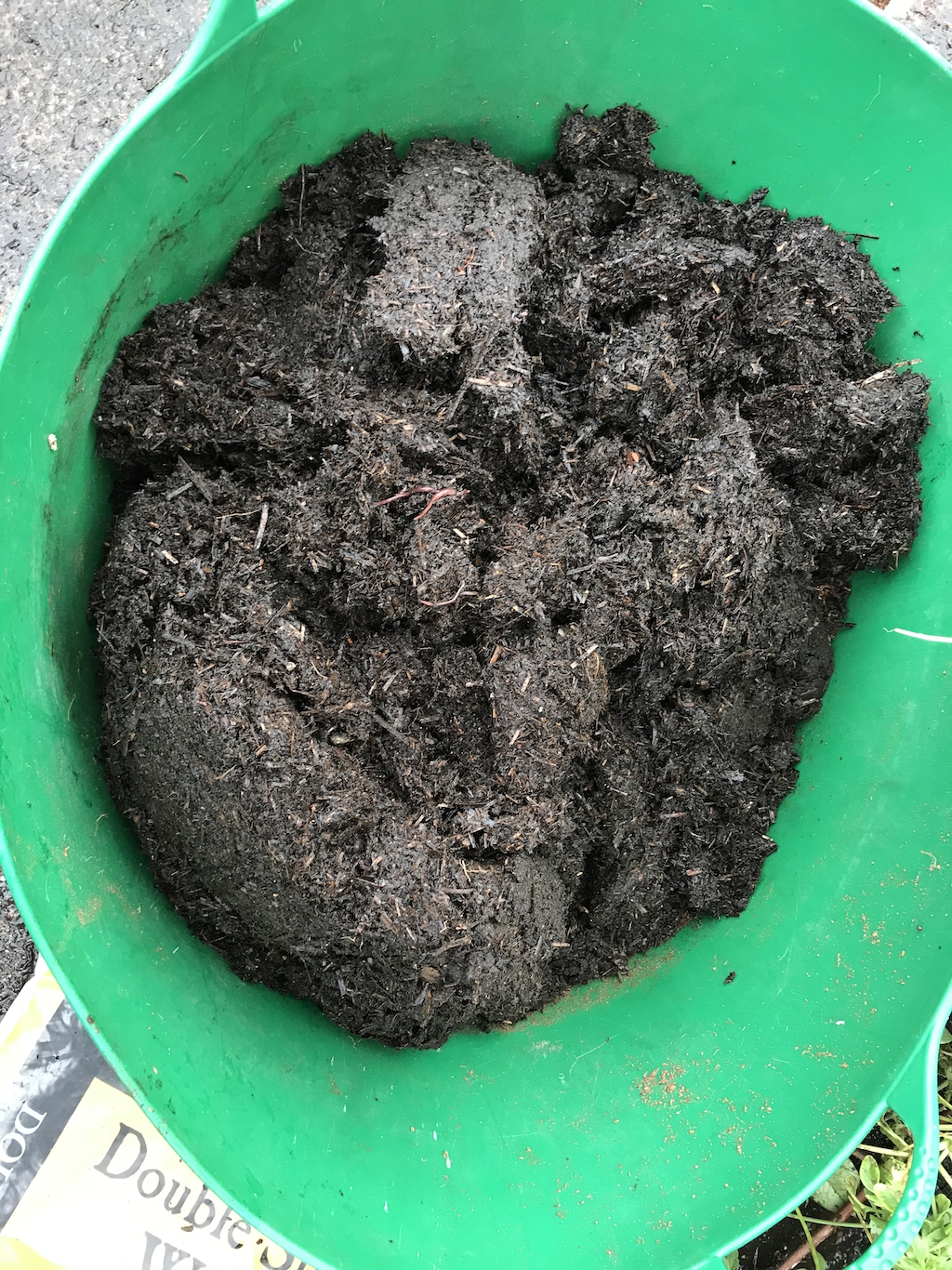 – fluffy coir (which had come as bricks, I soaked them overnight in water because it can take 12 hours or so for it to be useable, I find). This isn’t super-nutrient rich really but adds bulk.