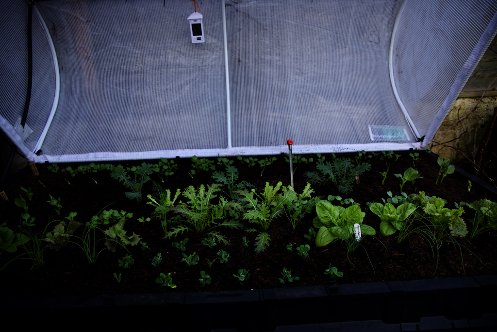 I’ve no idea how it will grow over the year, so I’m looking forward to finding out. I have bought it a soil thermometer and air thermometer, to make comparisons with the polytunnel. It is interesting having a different growing environment to play with.