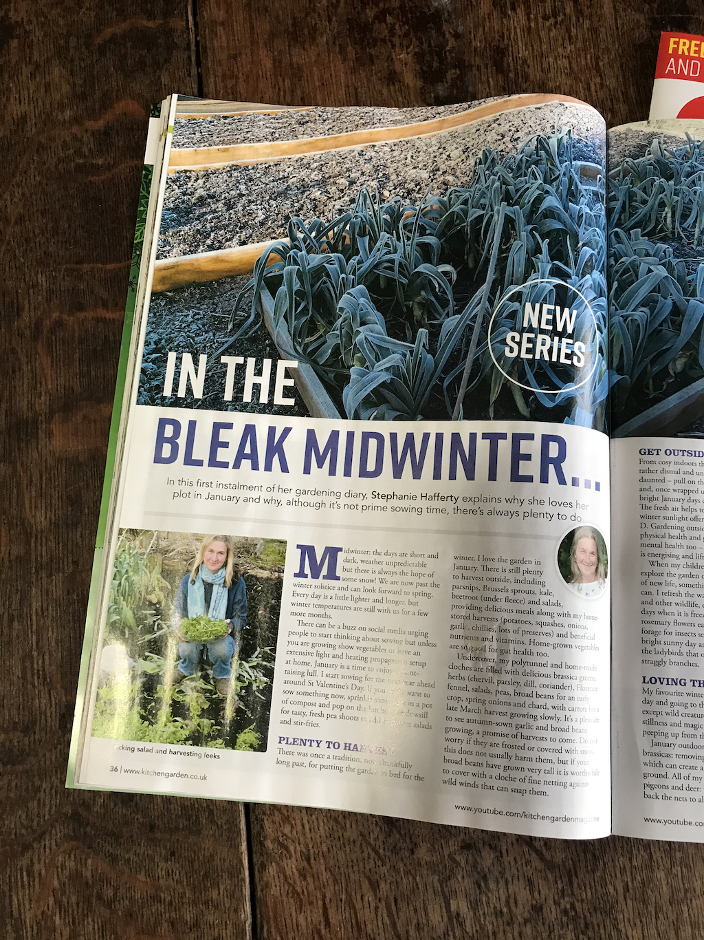I’ve been commissioned by Kitchen Garden Magazine write about my growing at home and at the allotment throughout the year, so do look out for that in your newsagents (or via subscription) – the mag comes with free seeds too.