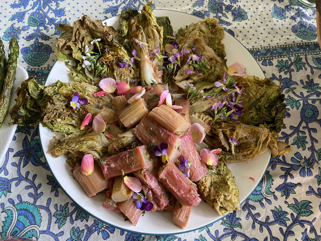 Roasted lettuce is so delicious, so I always grow some hearting lettuce as well as the lettuce for mixed salad. It’s simple to prepare. Cut into quarters (check for slugs) and place in a roasting tin. Drizzle with olive or sunflower oil, season with salt and pepper and roast for 15-20 minutes until cooked. Leave to cool.