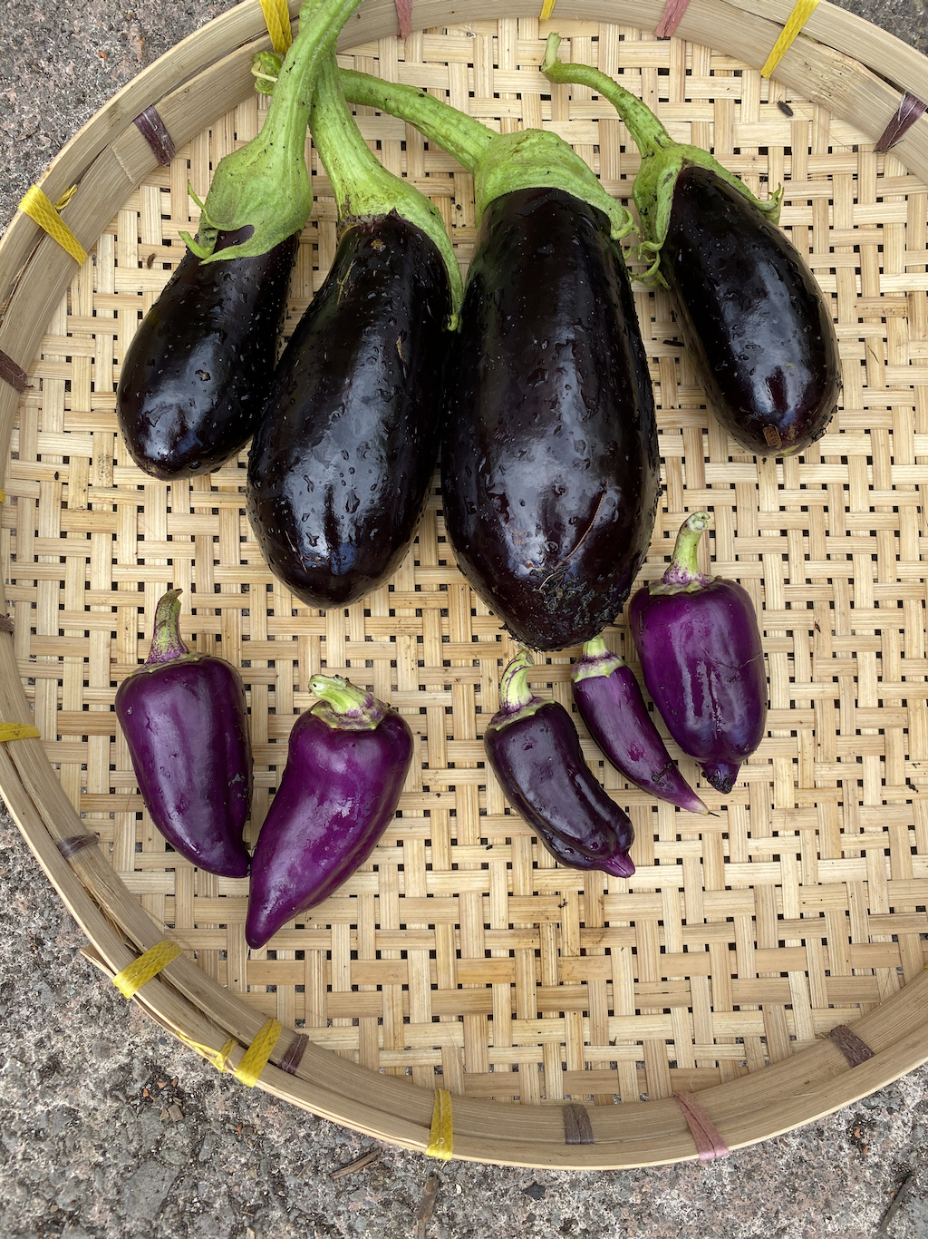 The aubergines have been slower than usual. I am harvesting a lot of the familiar fat purple aubergines, but my more unusual varieties haven’t been as happy this year as they have previously. Fortunately they are now starting to crop and should continue to do so until mid-October or even longer, depending on the weather.
