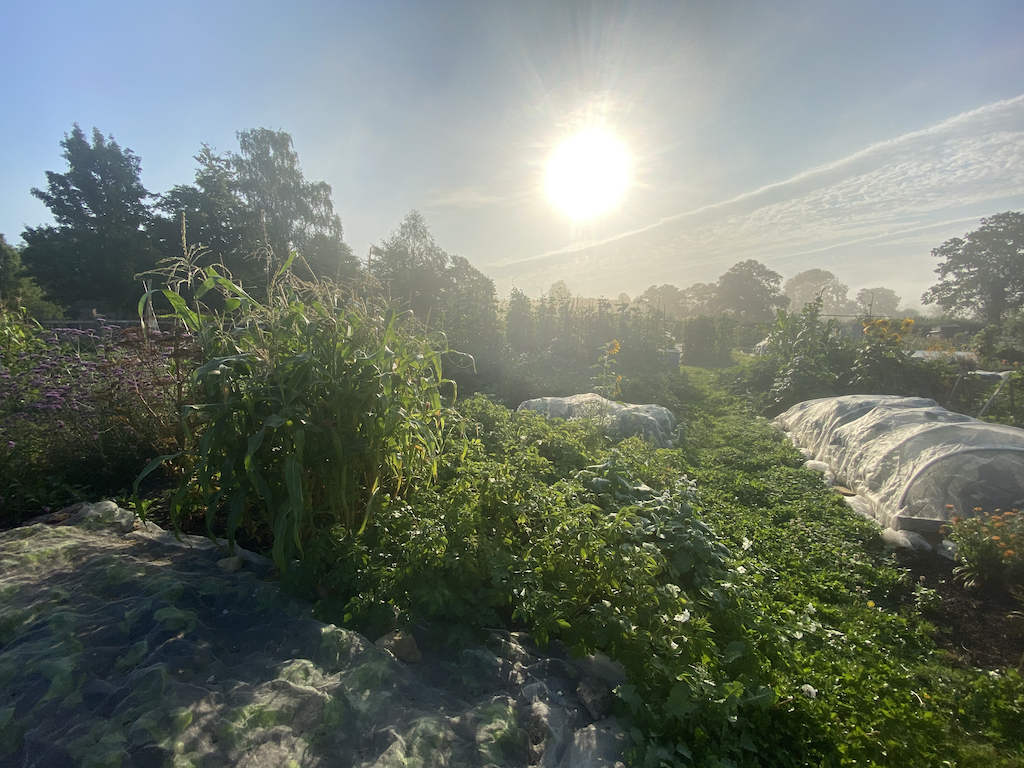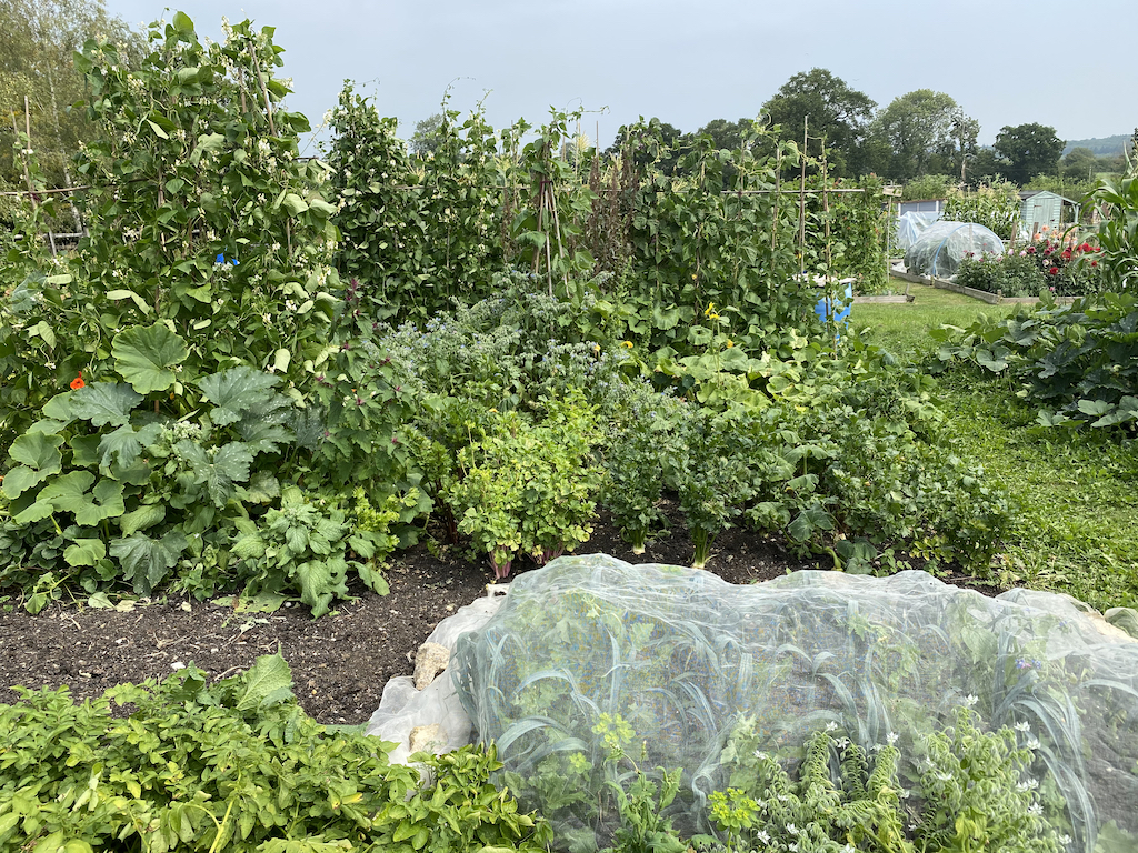 After one of the hottest weeks I have ever experienced in the UK, we are now enjoying rain and cooler temperatures. I thought I was going to melt earlier this week, it was so hot and humid I could hardly concentrate and it was impossible to do much gardening after mid-morning. I’ve just been for a walk up to my allotment and you can almost see the veggies slurping in the moisture with appreciation – and there is more rain forecast, hurrah.