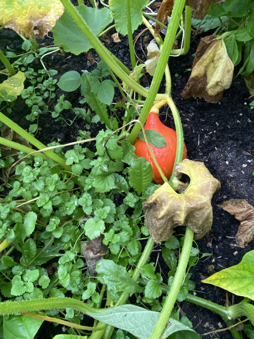 I have been away quite a lot recently which means that weeds have snuck into my plot. There is a bit of a myth that squash plants suppress weeds – they can stop some annual weeds from germinating, but also hide them from the gardener’s view until they suddenly pop out in glorious flower, ready to set seed at the first opportunity! I weed one bed at a time, otherwise it can feel overwhelming, using a hori hori or trowel.