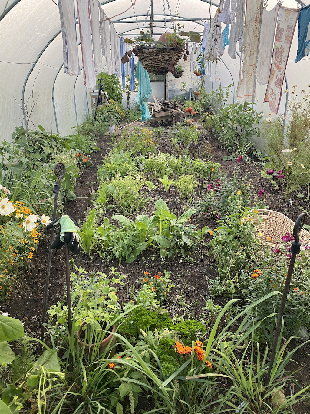 In the polytunnel, recent cold weather is causing the sweet potatoes to die back, this photo was taken a couple of weeks ago, and I will be harvesting them this week.Â