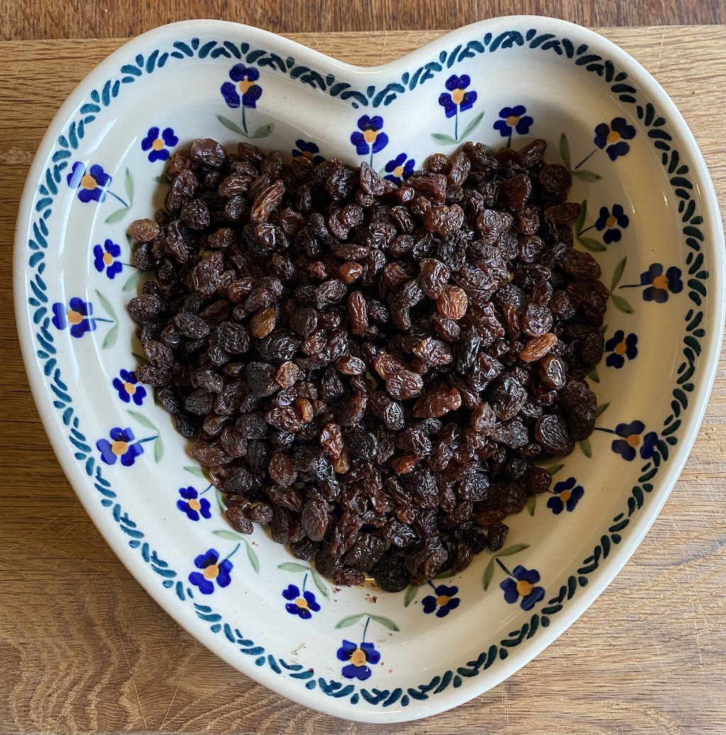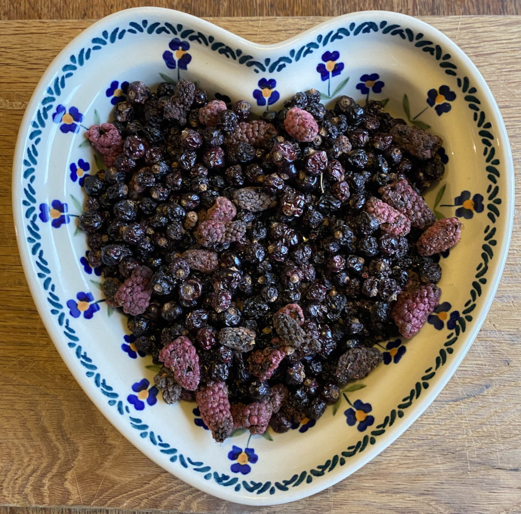 200g dried fruit (eg: cranberries, raisins, I used home-dried berries from the garden)