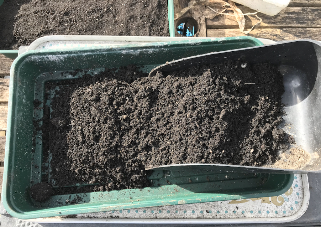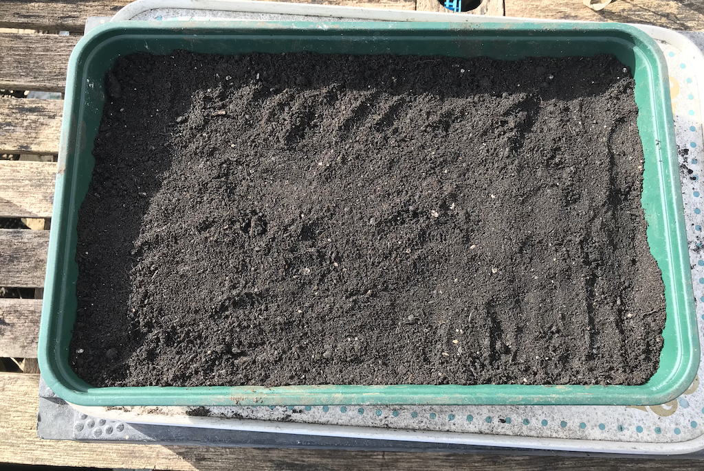Using this method, I can start 20 or more different varieties in one tray, saving space and compost.