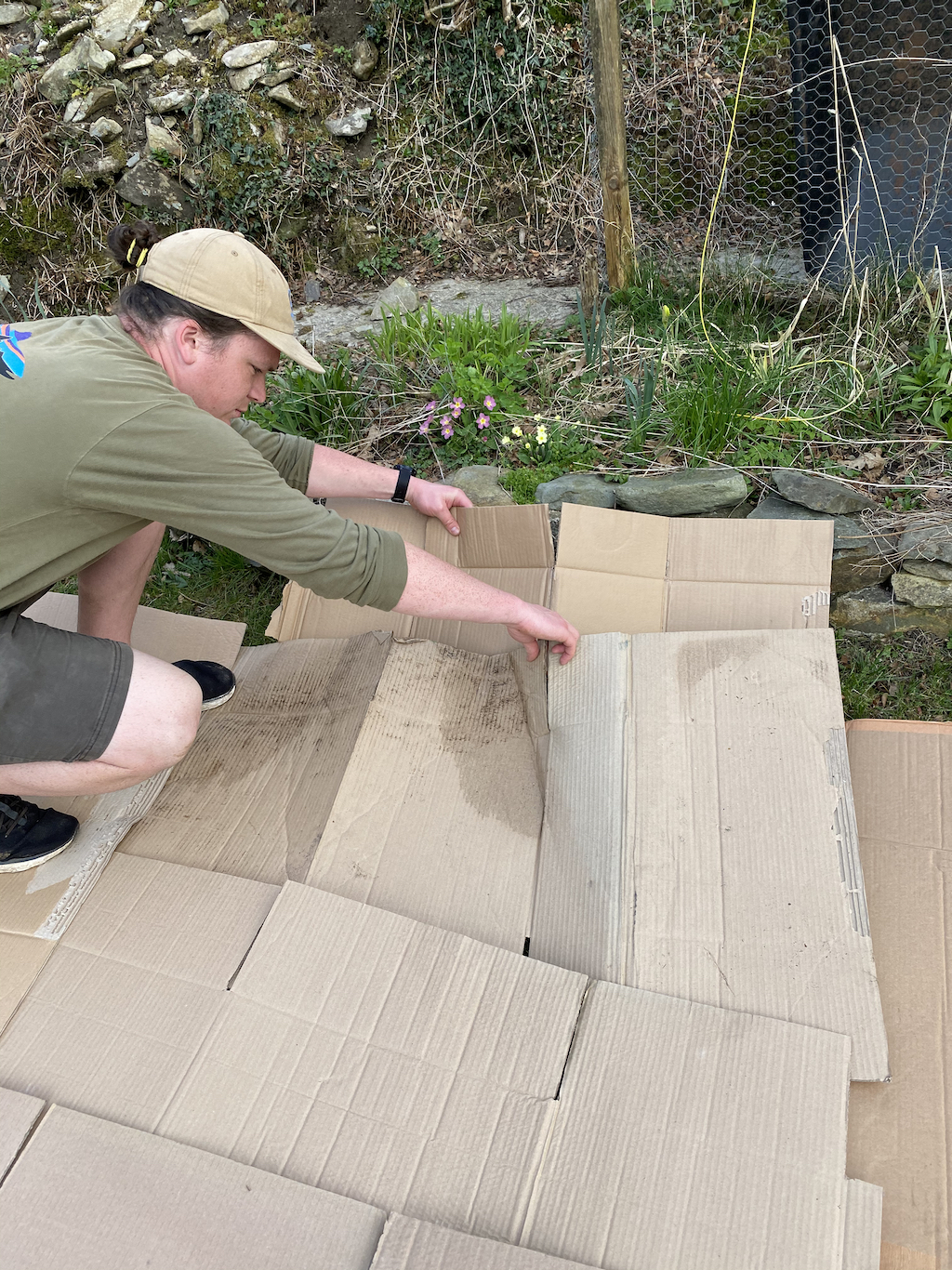 4. Cover the area with cardboard, taking care to overlap so that there are no gaps. Use smaller pieces of card to fill in any holes.