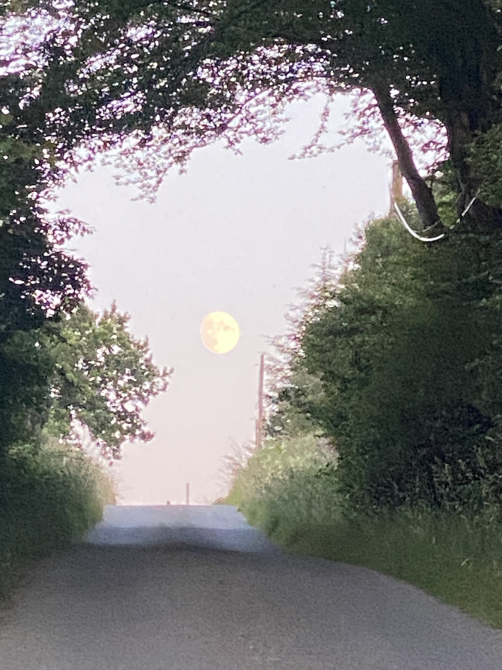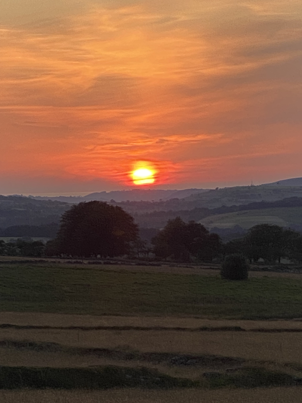 It really is so beautiful here. On July 21st my son Theo and I were walking in the evening and had the pleasure of seeing the almost full moon on Sarn Helen, a nearby Roman road and the sunset from the top of the hill.