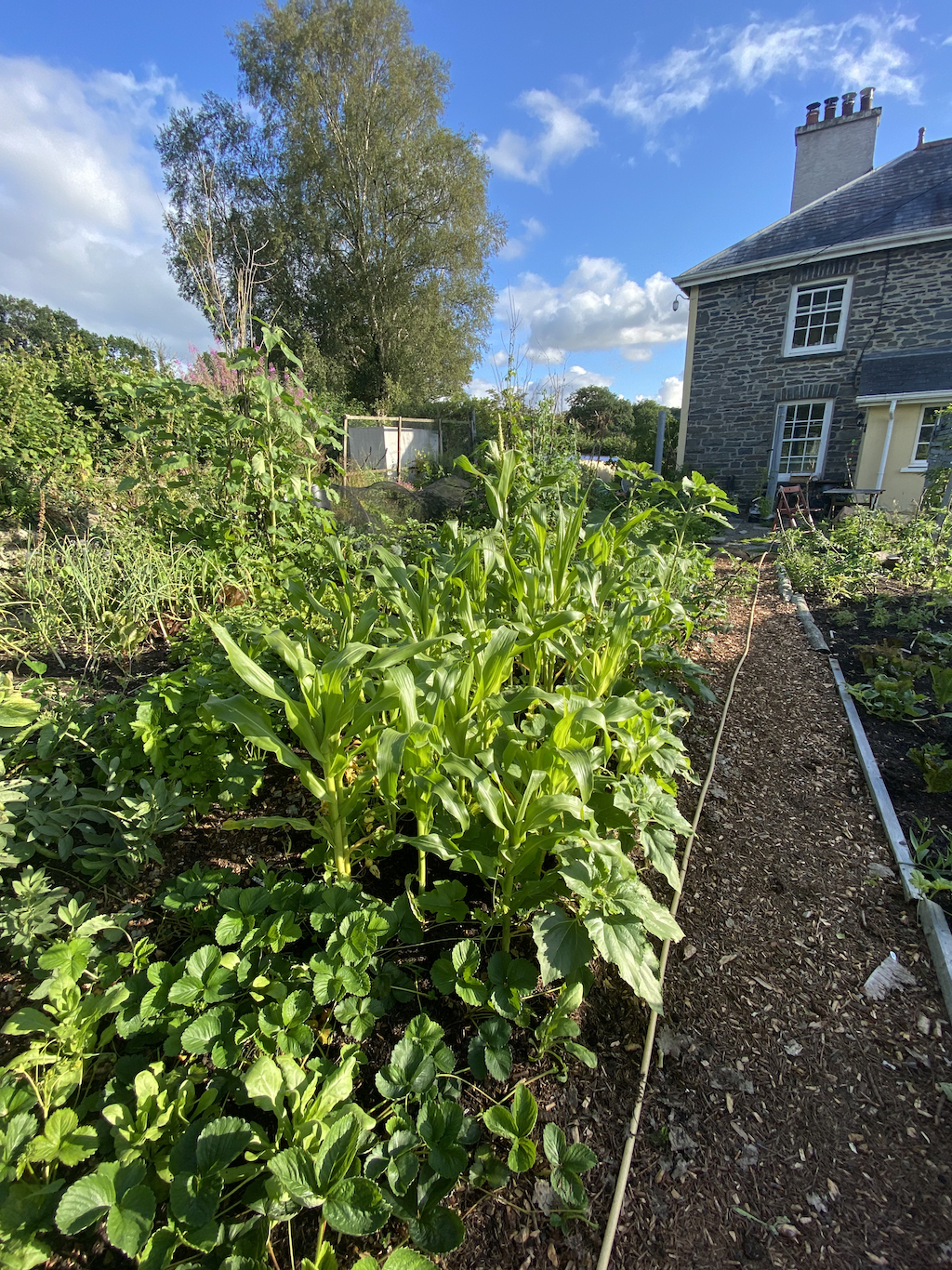 There is so much deliciousness in the garden and hedgerows to enjoy and store for the winter, even here at Ael Y Bryn where the veg garden is only four months old (almost to the day, I made the first bed on March 31st). As autumn approaches, now is also a “second spring”. During August and September, I’ll be sowing vegetables and herbs for cropping through the winter and into next spring. I’ll add a list of what I am sowing at the end of this blog, but first of all an update from Ael Y Bryn, my Welsh no dig homestead.