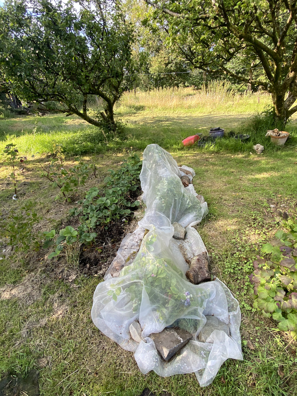 I’m looking forward to a crop of blueberries soon, they are ripening under the enviromesh – fingers crossed nothing will get there before me! There isn’t much of a soft fruit harvest here this year, due to having just moved, so I have been enjoying eating wild blueberries on the lane and look forward to picking blackberries when they are ripe.