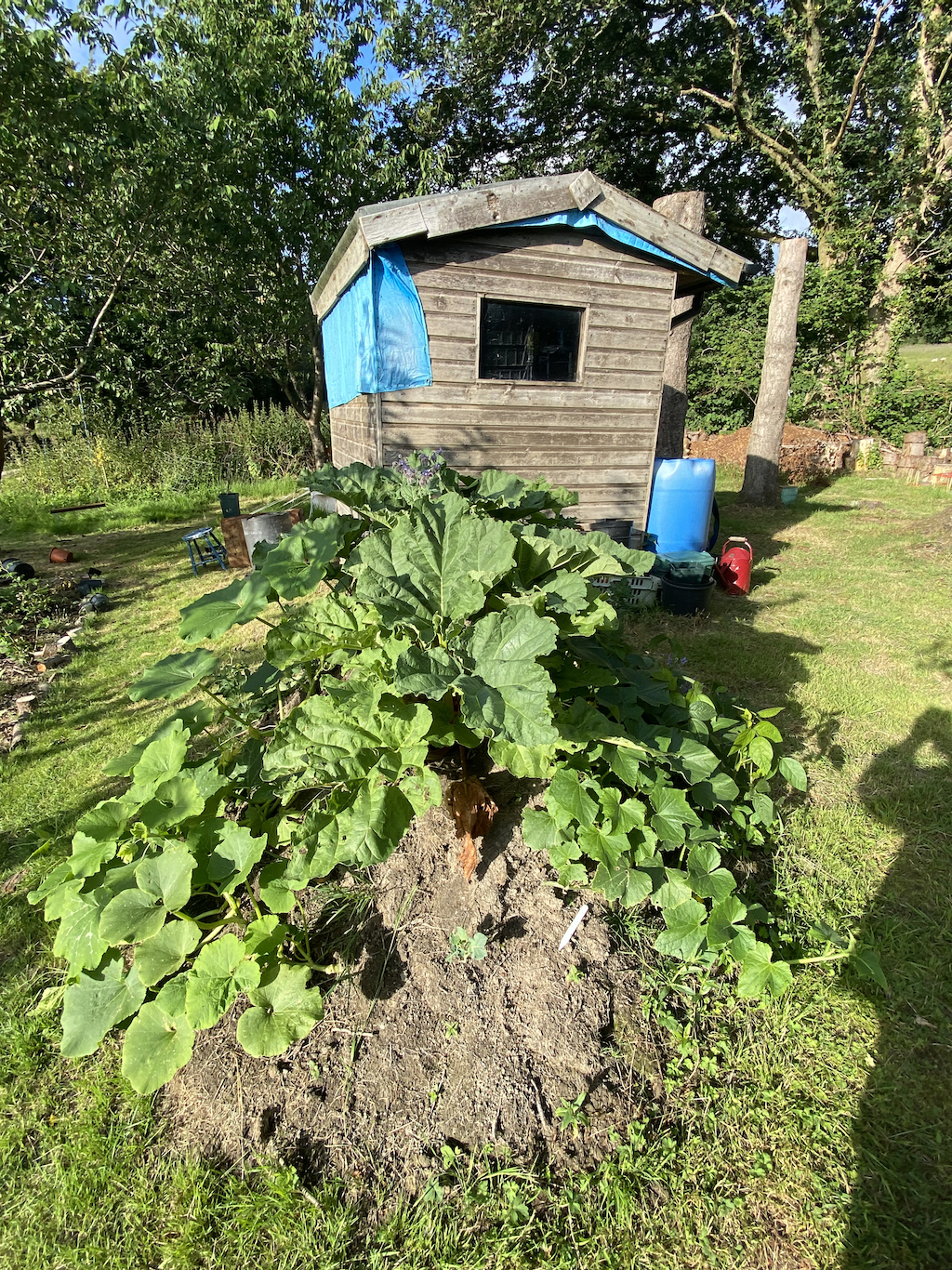 After all of that time away, the experimental beds really need weeding – I have just not had the time. Must get that grass out from the asparagus soon though! I am pleased with the way the plants are growing on hugelette and surprised too as I thought they would dry out during the heatwave, but not at all. Some of the plants have been munched by slugs, but the rhubarb, squash, tomatoes and edamame are growing beautifully.