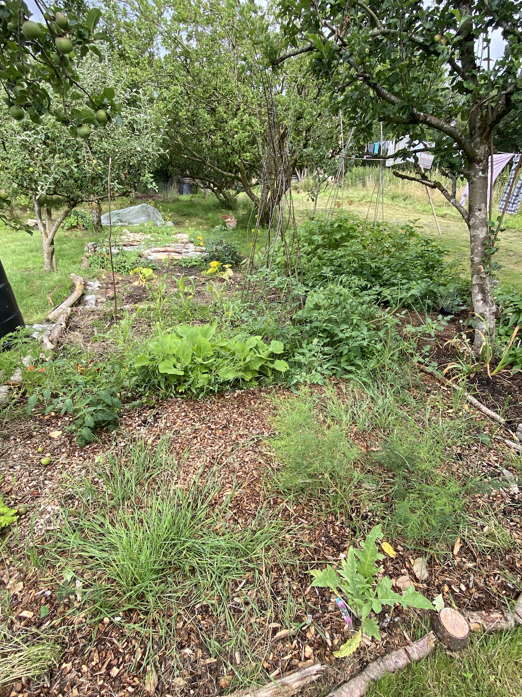 We’ve been enjoying outdoor life in the orchard, especially now we have the 3 metre bell tent to hang out in. The neighbours here are sheep, and some squirrels which are frustratingly eating all kinds of things I wish they were not, including green apples and strawberries. I don’t mind them eating the bird seed so much, or the unripe hazelnuts as I expected those to go to the squirrels. I’ll be netting the strawberries and am wondering what to do to protect the sweetcorn…