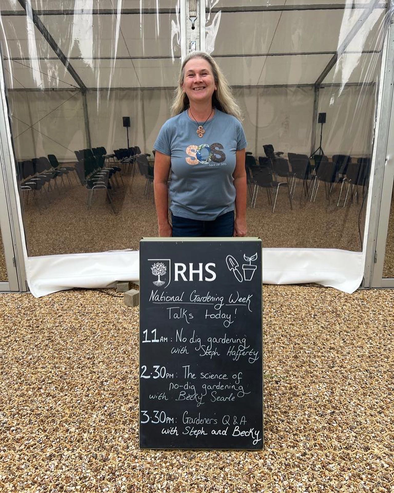 May is a busy time of year in the garden and also the start of gardening shows and events season. In early May I was delighted to be invited to RHS Bridgewater in Manchester to speak about no dig gardening as part of their National Gardening Week events. Becky Searle (@sowmuchmore) joined me, explaining the science behind why no dig gardening works – find out more in her You Tube video.