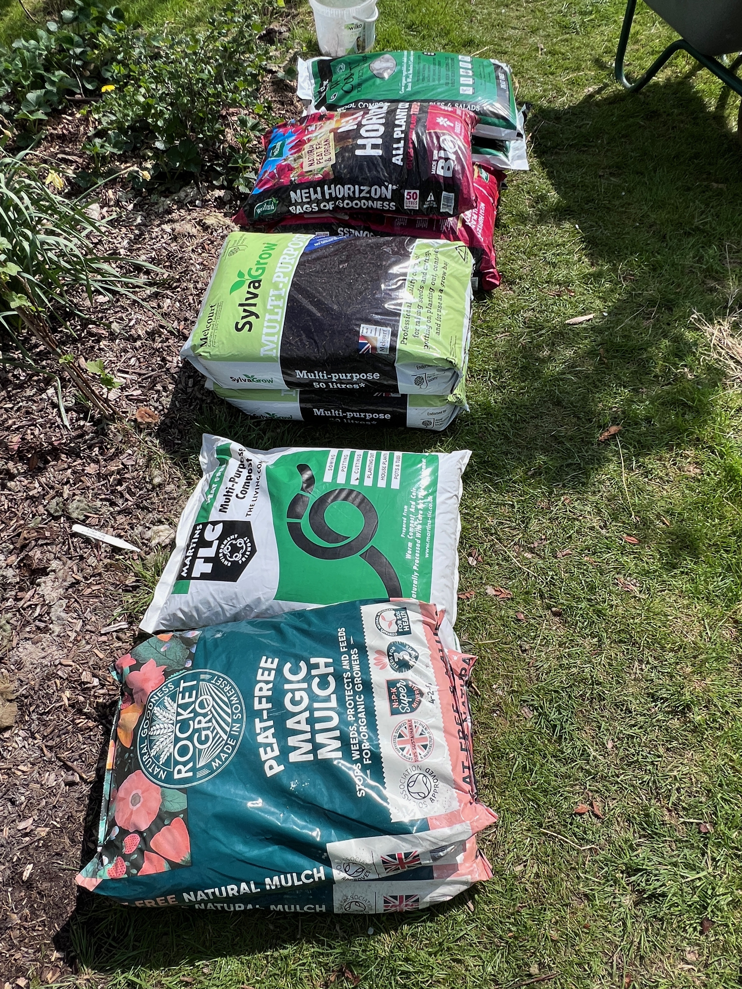 All of these composts are peat free: some were bought locally, others sent by brands for me to try out. This bed used a lot more compost than the polythene one, but of course once the potatoes are harvested will be used to grow veg for years to come. There’ll be a video about making this bed on my You Tube channel too, but I’ve not had time to edit that yet, due to working away quite a bit recently 🙂