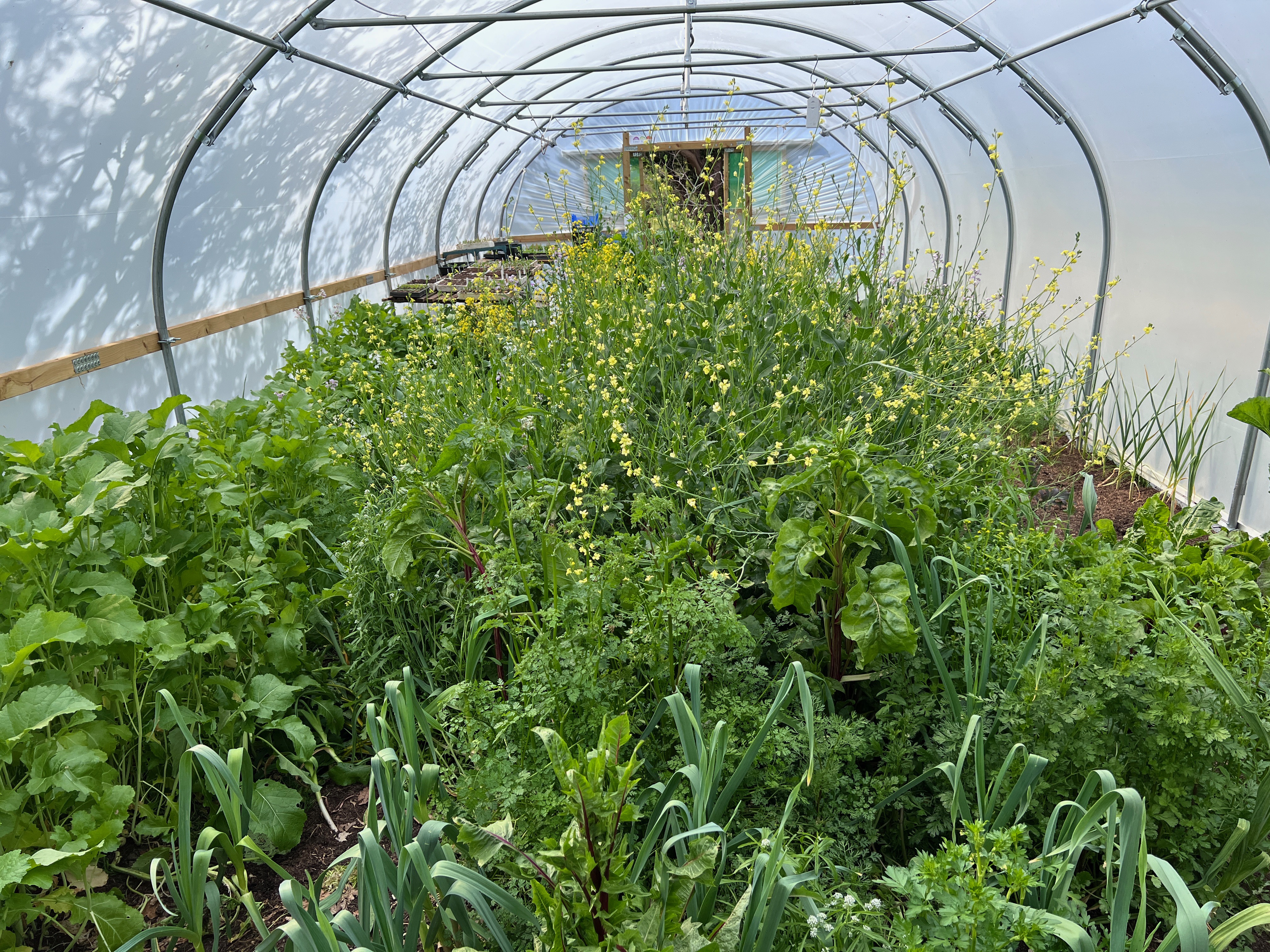 (It is possible to “perennialise” some brassicas, but a polytunnel is a precious undercover space here, so it makes more sense prioritising summer crops, whose yields are increased by growing under cover.)