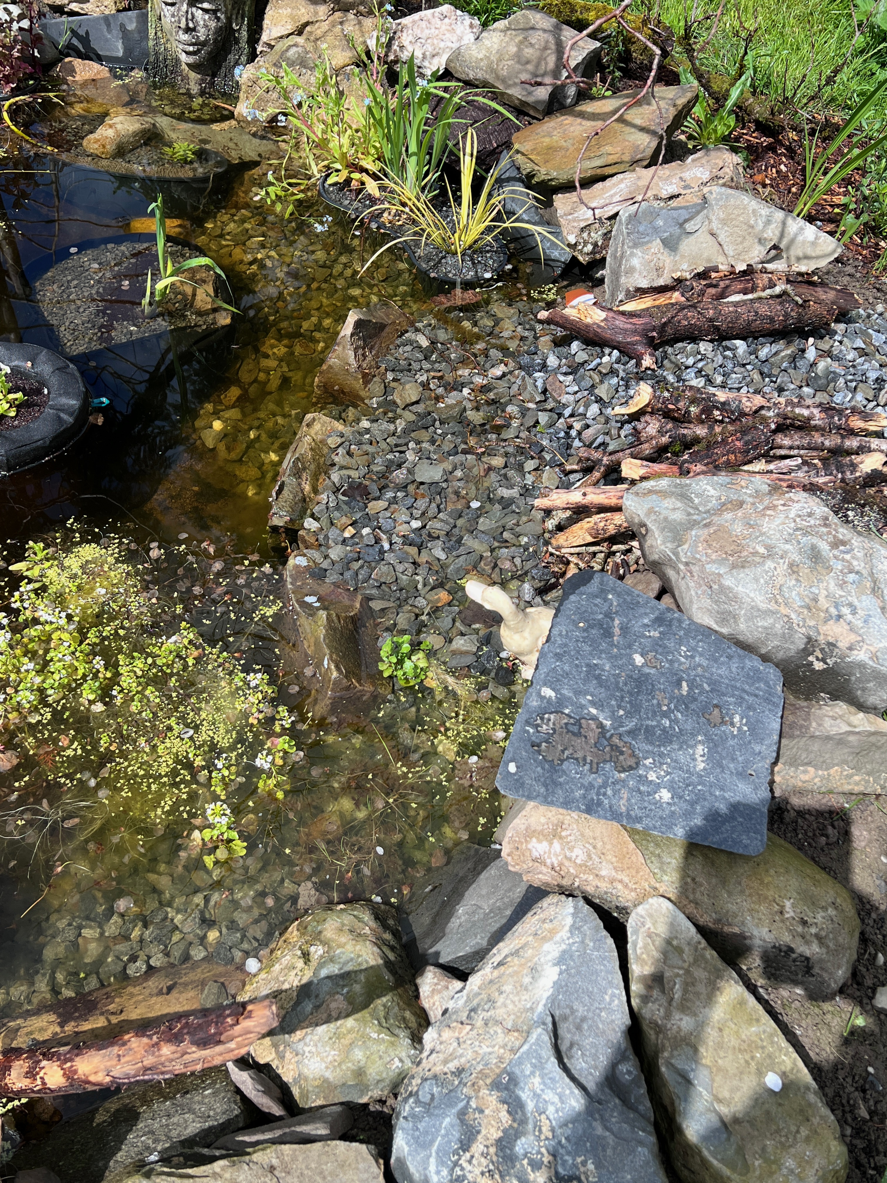 Recently Ruairi (my son) dug a wildlife pond in the orchard behind the polytunnel. It’s about 2m wide and 1m deep in the middle. There are tiers and a “beach” to create different levels for growing in, and also safe escape for wild creatures. I’m hoping for toads, frogs and other creatures to visit here, which will help get the balance of predator and prey in our garden!