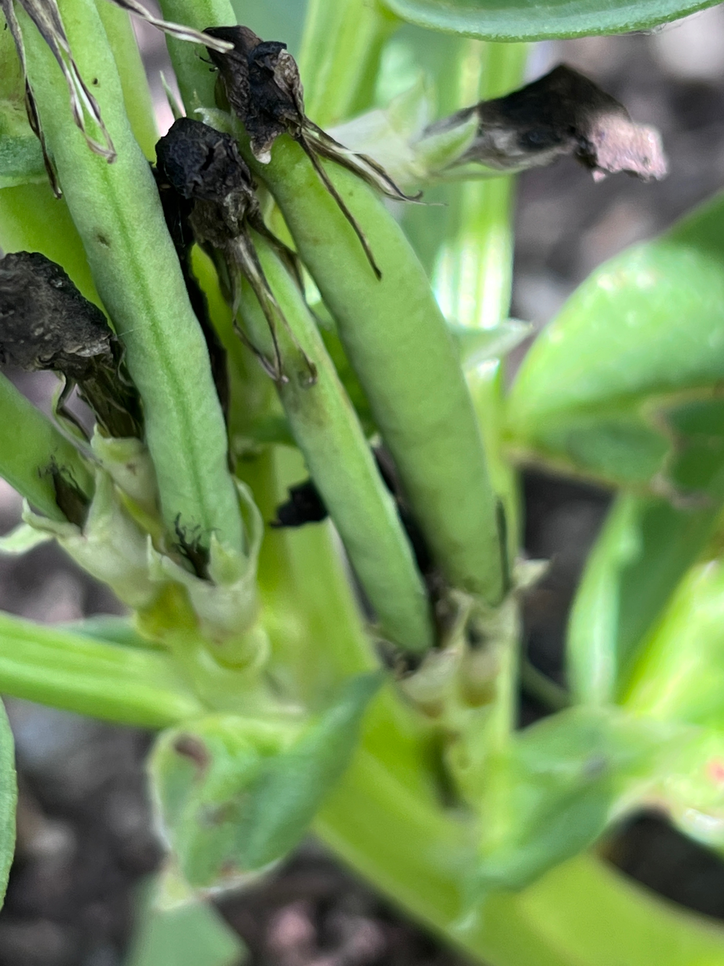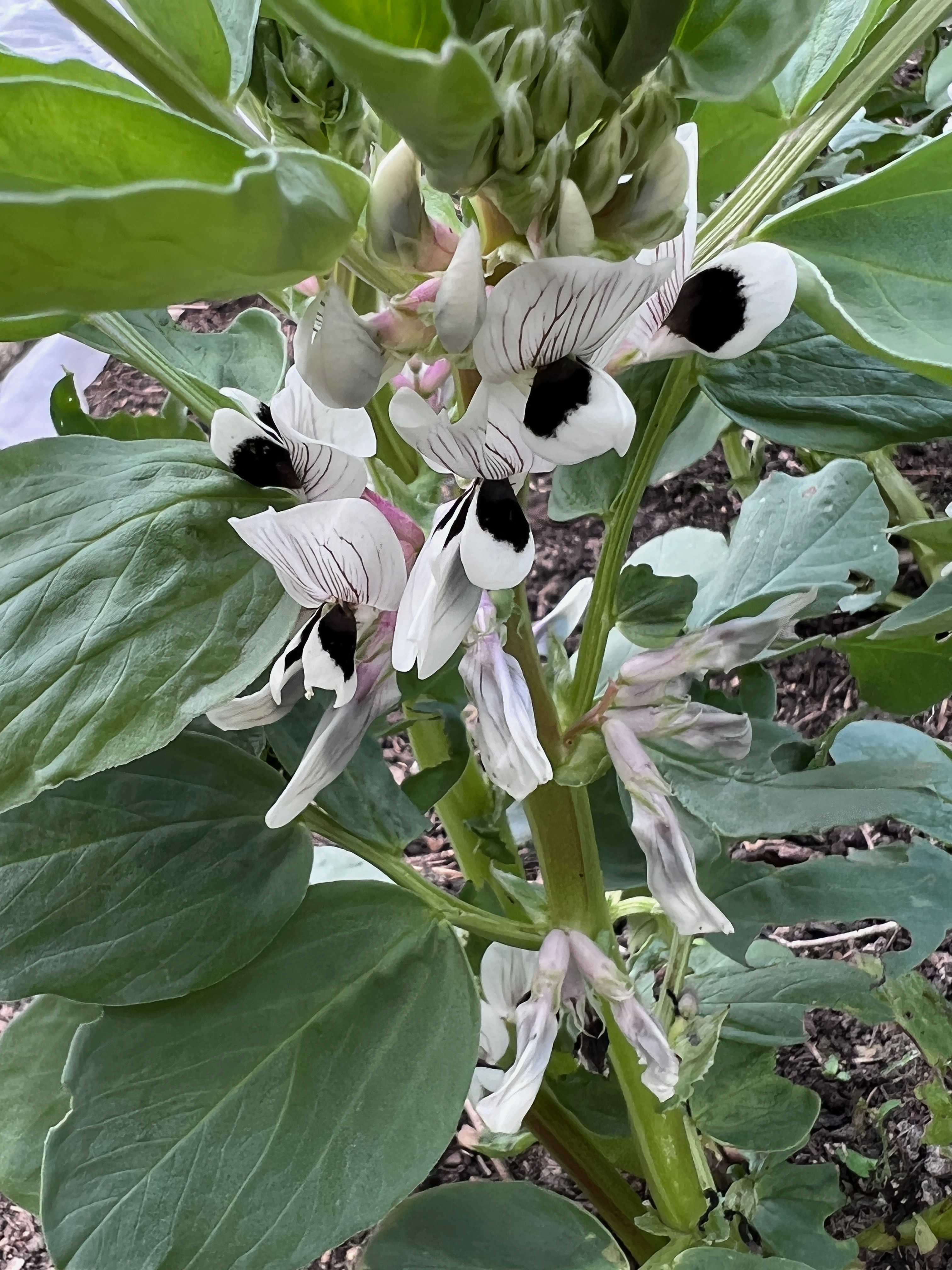 These broad beans are a mixture of overwintered (white flowered) and spring planted (crimson flowered). The beans are on their way! I’ve noticed that the bean crop is a bit later than I had in Somerset, due to my location up a hill in Wales. I haven’t removed the broad bean tops yet. These are also a tasty harvest, delicious raw and steamed. You can eat the beans when they are tiny like this, whole like you would a French bean, but I am looking forward to the fat broad bean harvest.