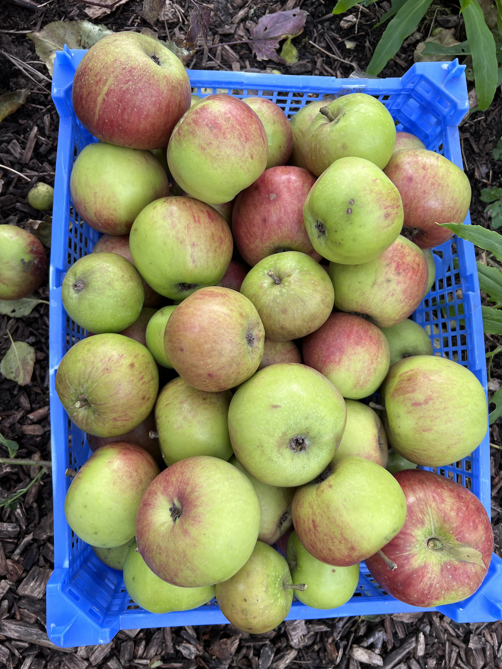 Many apples have fallen to the ground and although we have collected many crates to eat, I’m happy to leave plenty for the wild creatures who live here too. They are valuable food for many insects, birds and mammals. This garden is not just for feeding us. Creating a diverse ecosystem with food and water sources for many creatures means that welcome visitors such as Bernard the hedgehog have chosen to live here. We have only seen Bernard on the trail camera (and have no idea whether it is actually male hedgehog, Theo named him Bernard).