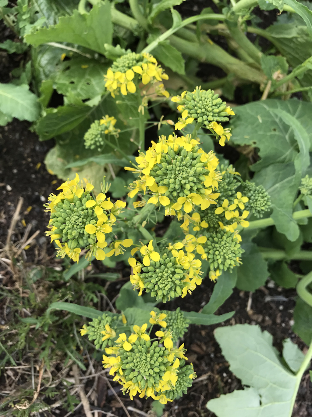A simple way to increase biodiversity and encourage a healthy predator/prey balance is to allow some brassicas to go to flower and to try to have some flowering as much of the year as possible: cabbages, mustards, kales, any kind of brassica is fine. This flowers provide forage for bees, and also attract parasitic wasps, hoverflies and ladybirds. Tolly (Iain Tollhurst) explained to me some years ago how he used this on his farm to keep caterpillars from his brassica crops, so I tried it on a smaller scale in my home garden and allotment (then in Somerset) and it works. I still net my main brassica beds (the pigeons are not deterred by parasitic wasps!) but this method helps to keep aphids and caterpillars at a sustainable level. Without aphids there would be no food for the larvae of ladybirds or the hungry newly hatched off spring of blue tits.
